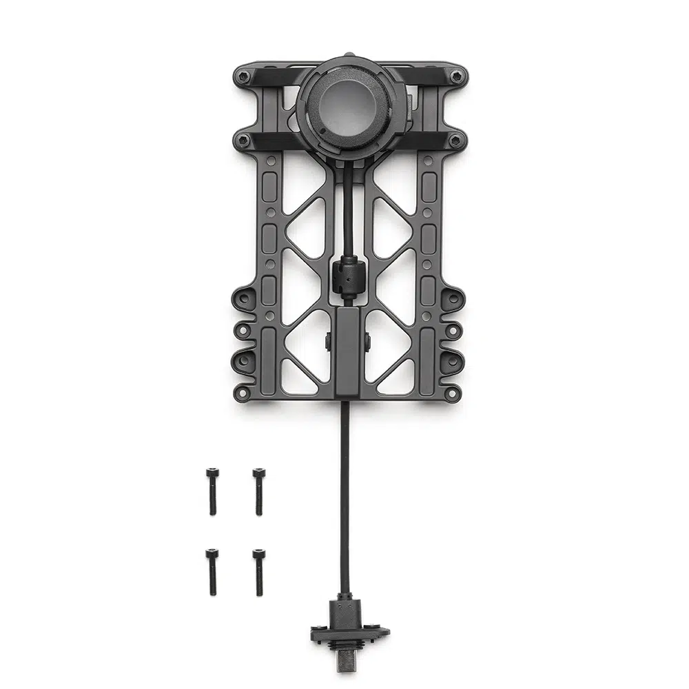 Conectorul DJI Matrice 400 pentru al treilea gimbal adaugă un suport stabilizat, suspendat, pentru o sarcină utilă suplimentară pe M400. Folosind sistemul giroscopic al aeronavei, menține camerele sau senzorii la nivel în timpul zborului și suportă până la 6 kg atunci când este blocat cu șurub (eliberare rapidă de 3 kg). Perfect pentru conectarea de dispozitive vizuale, termice sau LiDAR pe m400.